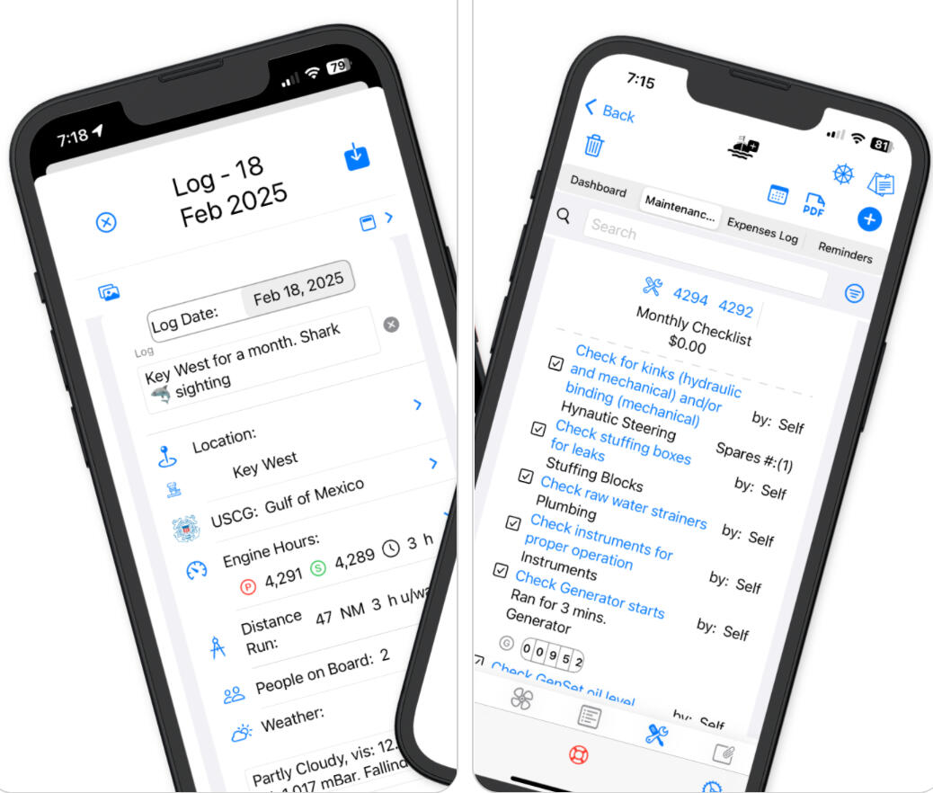 A database of recommended Planned Maintenance tasks and intervals, which can be added to a boat specific Upkeep Logbook.